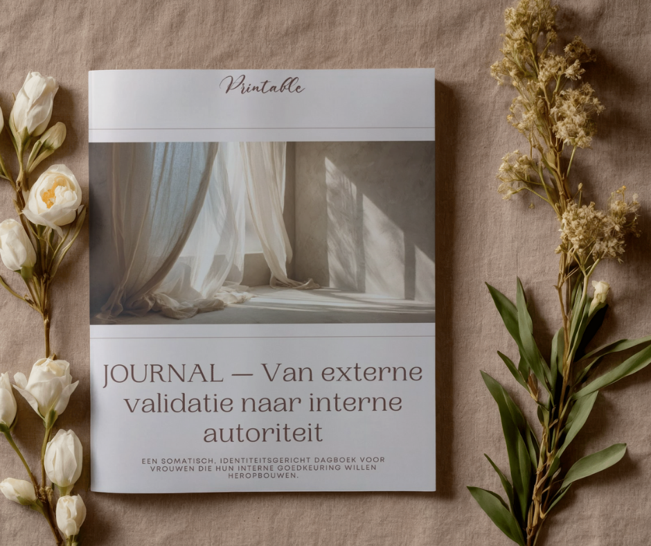 Als je voelt dat dit blog iets in beweging heeft gezet — dat je lichaam, je grenzen, je interne autoriteit opnieuw ruimte vragen — dan is de printable‑journal de volgende zachte stap.